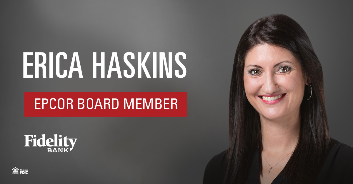 Fidelity Bank Commercial Services Manager Erica Haskins has joined the board of EPCOR, a non-profit trade association for payments professionals. EPCOR provides banking payments education and support to more than 1,800 member institutions across 12 states in areas that include compliance, operational processes and risk mitigation.