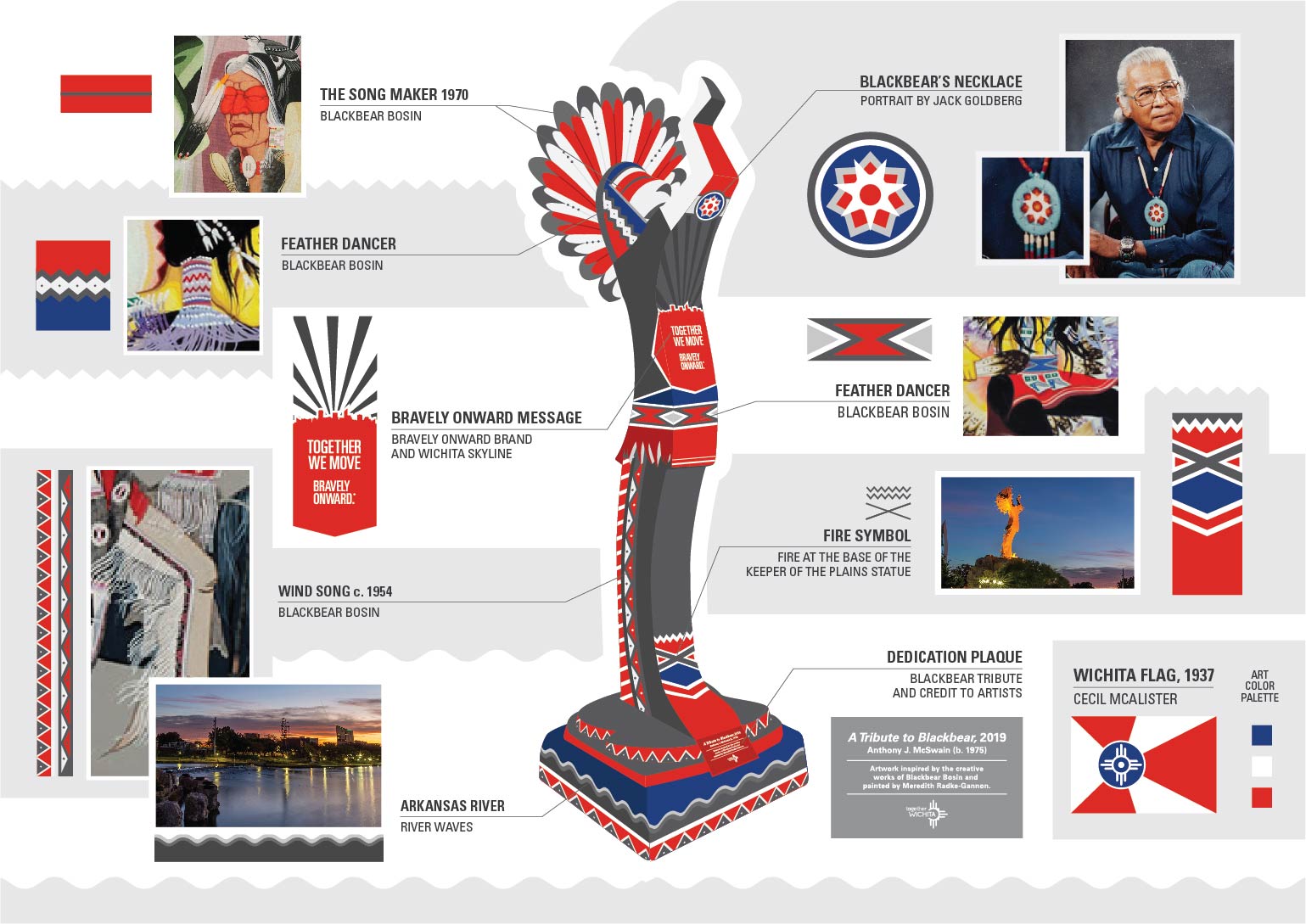 Entitled "A Tribute to Blackbear," Fidelity Bank's Keeper of the Plains replica statue was designed by Anthony J. McSwain and painted by Meredith Radke-Gannon. It was dedicated by Clark Bastian, Fidelity Bank's CEO and chairman of the board, on Friday, November 15, 2019. The Fidelity Bank Keeper on Parade statue is now on display at the west end of the headquarters building in downtown Wichita, Kansas.